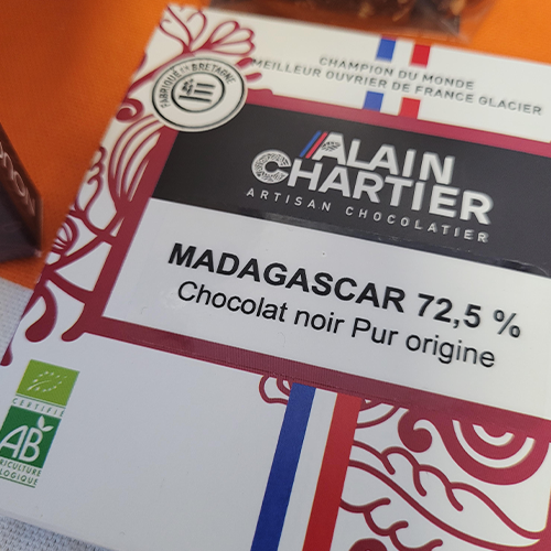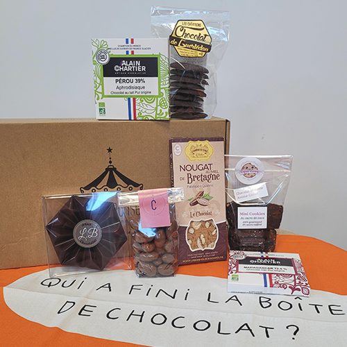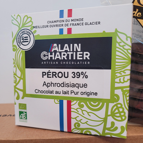 – Une tablette chocolat au lait 39% Aphrodisiaque (baies de goji, cranberries, griottes, gingembre & poivre de timut)