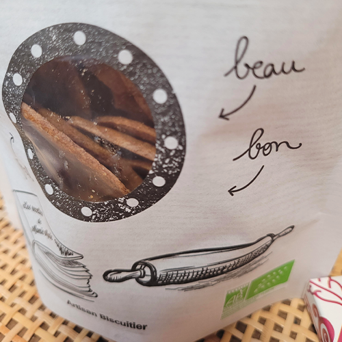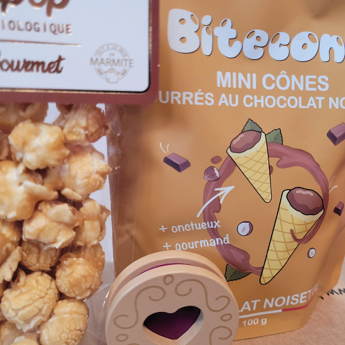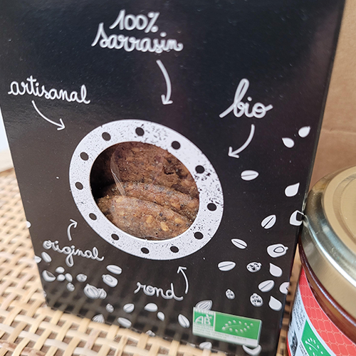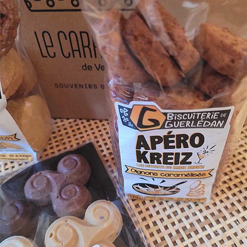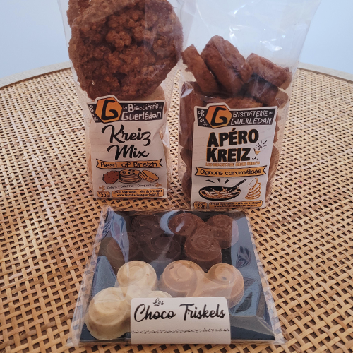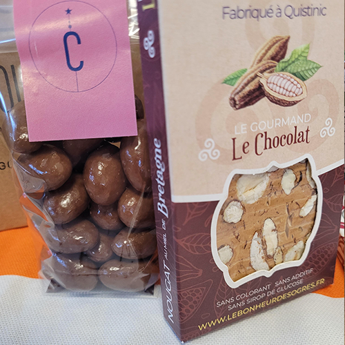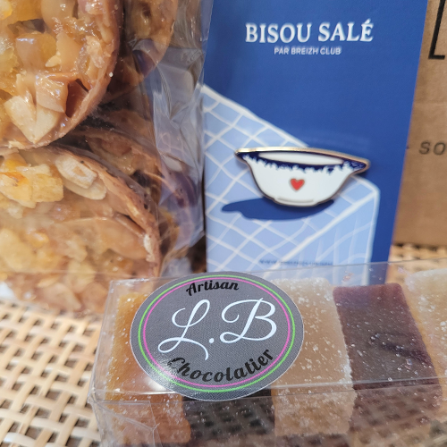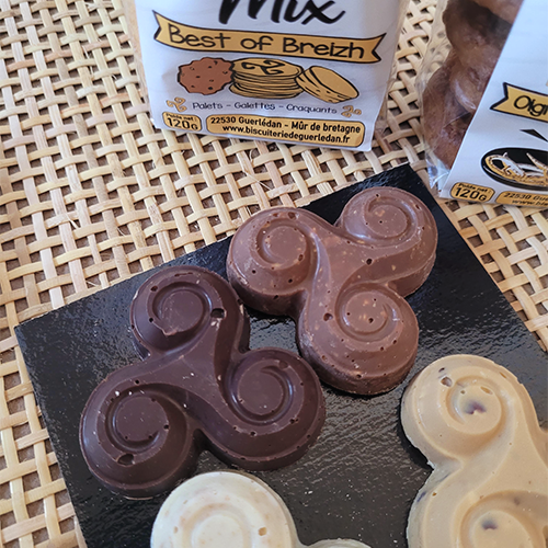 – Des mini-galettes bretonnes enrobées de chocolat (noir ou lait)